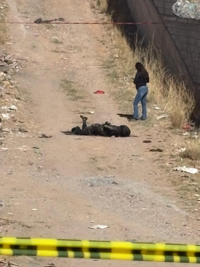 El cuerpo de una persona sin vida completamente calcinado al que ataron de pies y manos y al parecer le prendieron fuego en el lugar, fue localizado en un camino de tracería de la calle Mina La princesa cruce con Tomochi de la colonia Madera 65 a espaldas de la barda perimetral de la empresa Interceramic.