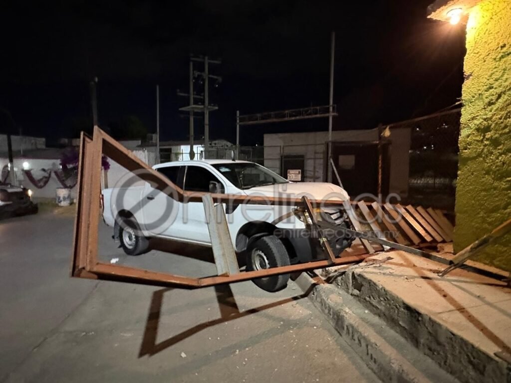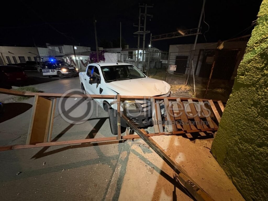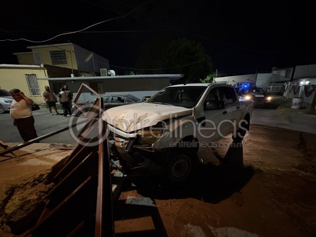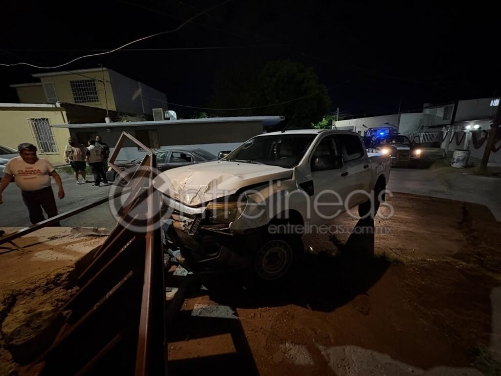 El percance ocurrió en el cruce de las calles Gorrones y Nuevo León, cerca del canal Teófilo Borunda y la Vialidad Sacramento, donde una camioneta Ford Ranger de color blanco subió a la banqueta y terminó estrellándose contra la escalera exterior de un domicilio, la cual quedó severamente dañada.