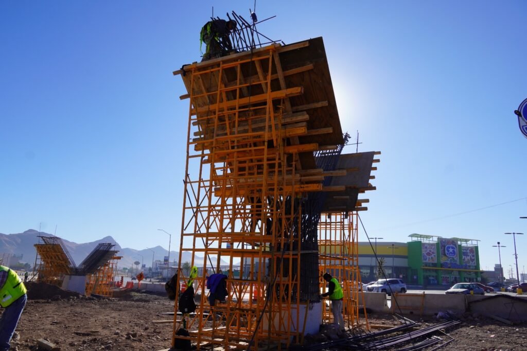 El Gobierno Municipal, a través de la Dirección de Obras Públicas, avanza en la construcción del Paso Superior en la vialidad Los Nogales y avenida de las Industrias, una infraestructura clave para mejorar la movilidad en el norte de la ciudad, la cual registra un 14 por ciento avance.