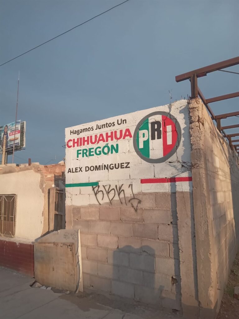 Con la frase “Hagamos juntos un Chihuahua fregón”, el nombre del legislador federal y el logo del PRI, fueron varias las bardas que fueron detectadas esta tarde en colonias de la capital de estado.