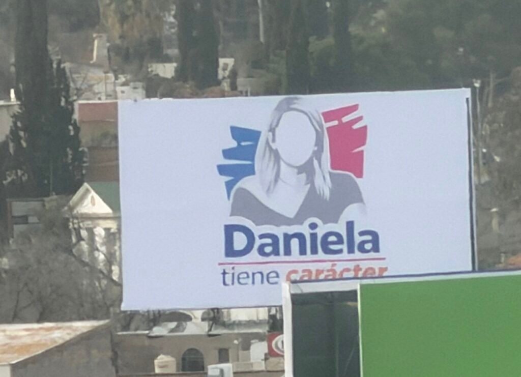 Mientras que el correspondiente a Daniela, se puede ver una silueta de la dirigente panista con la frase “Daniela tiene carácter”.