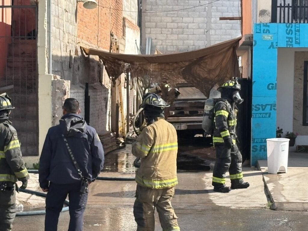 Elementos de bomberos arribaron a la calle Jiménez y 72 colonia cerro de la cruz para sofocar un incendio en la cochera de este domicilio.