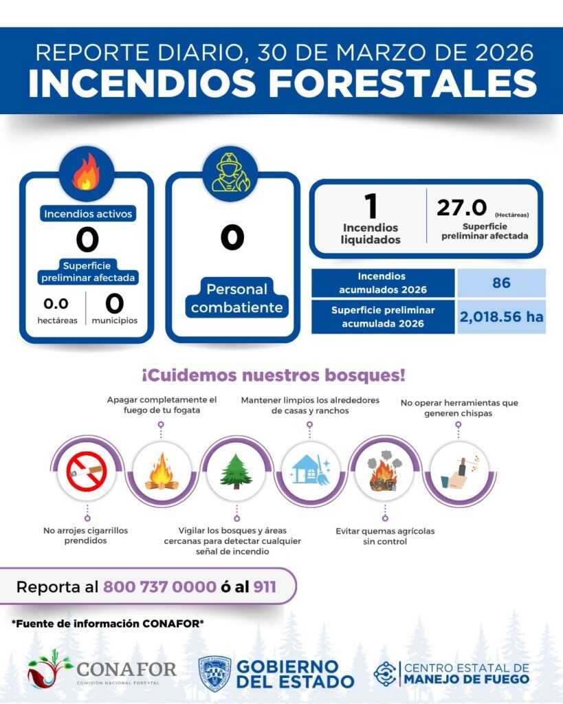 El Gobierno del Estado exhorta a la ciudadanía a reportar incendios forestales o riesgos a los números (800) 737-00-00 o al 9-1-1, y recomienda evitar fogatas en zonas boscosas, no tirar colillas de cigarro y apagar por completo cualquier fuente de fuego.