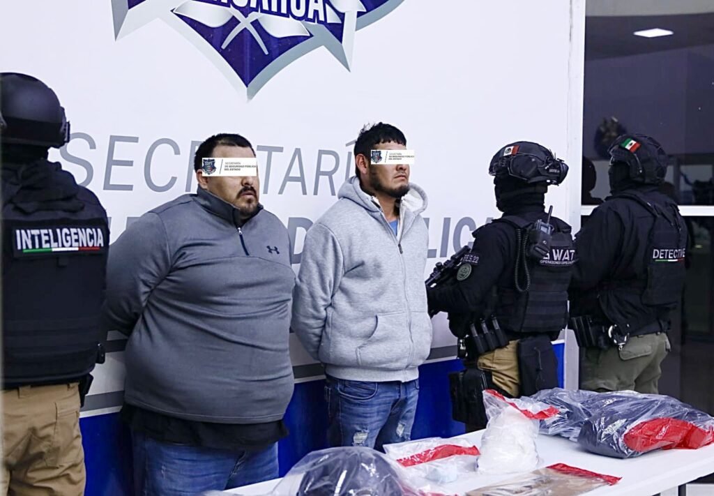 La Secretaría de Seguridad Pública del Estado (SSPE), en colaboración con la Guardia Nacional, llevó a cabo la detención de dos sujetos, presuntamente implicados en el ataque armado en contra de personal de la Policía Estatal, quienes además se encontraban en posesión de equipo táctico y diversas drogas.