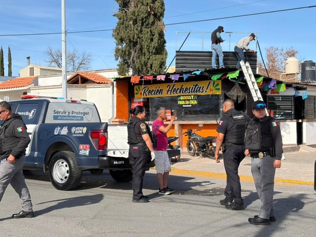 policías municipales luego de que varias personas reportaron que se había subido a un poste.