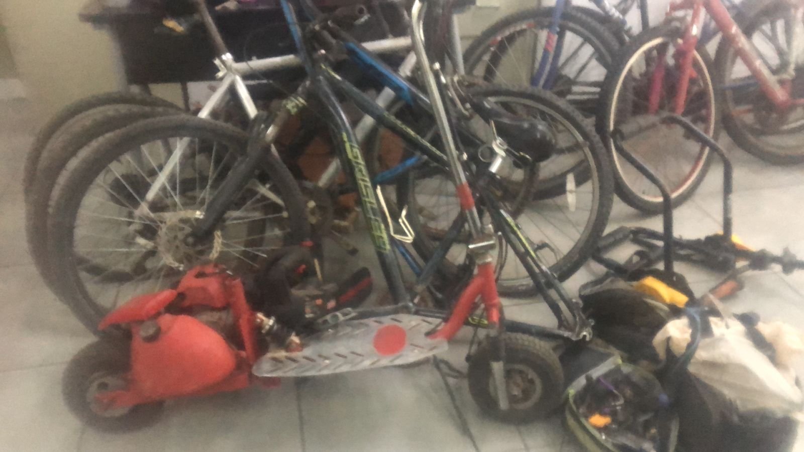 Elementos de la Agencia Estatal de Investigación (AEI), aseguraron durante un cateo en una vivienda de colonia PRI, diversos artículos entre los que se encuentran bicicletas y diversos aparatos, durante una investigación judicial en proceso.