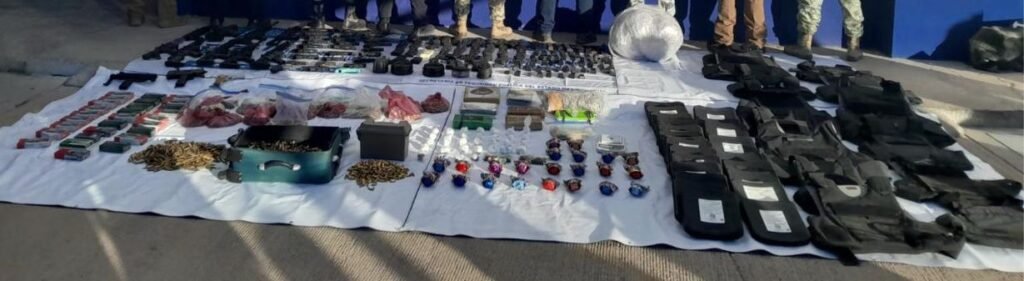 Derivado de un operativo interinstitucional realizado en el municipio de Aquiles Serdán, Chihuahua, se logró el aseguramiento de armamento, enervantes y diversos objetos ilícitos, los cuales fueron puestos a disposición de la autoridad competente.