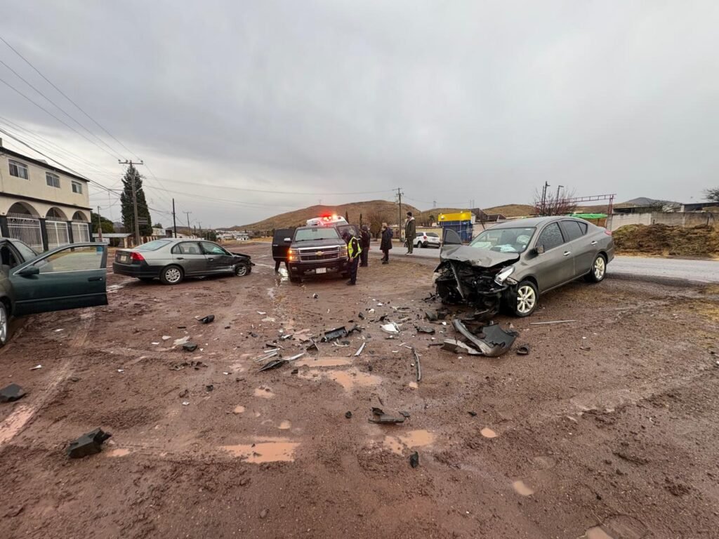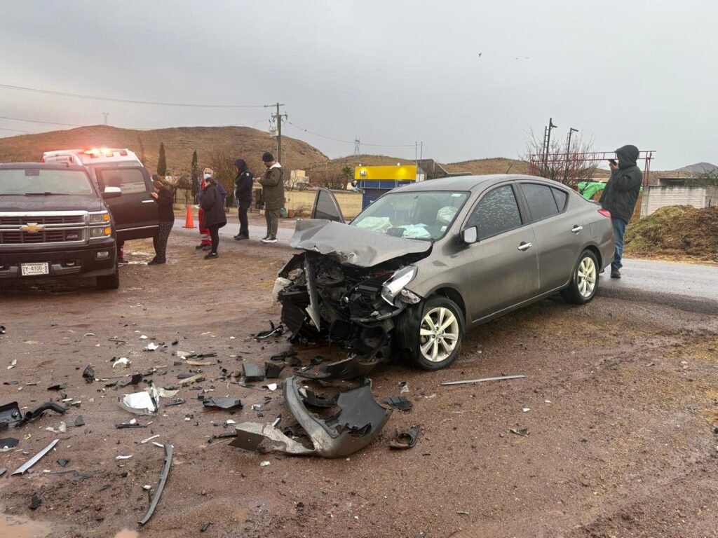 El Honda civic circulaba de oeste a este, pierde control por asfalto mojado, sale del camino y se vuelve incorporar a la cinta asfáltica, pero invade carril contrario impactando a Nissan versa que circula también camino a la presa chihuahua en sentido opuesto.