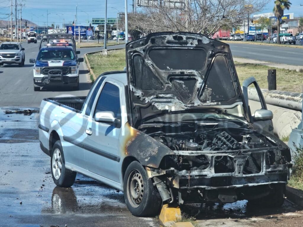 El conductor de una pickup Volkswagen Pointer de color gris que circulaba sobre la avenida Tecnológico en sentido de norte sur, antes de cruzar el Circuito Universitario indicó a la autoridad que sintió un jalón lo que hizo que se detuviera y al descender, comenzó a incendiarse de la parte del motor, la cual quedó […]