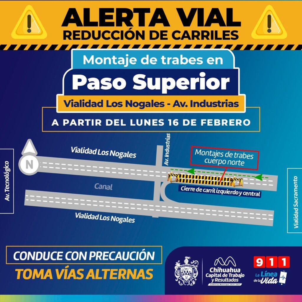 El Gobierno Municipal, a través de la Dirección de Obras Públicas, emite una alerta vial por la reducción de carriles en la vialidad Los Nogales, debido a los trabajos de montaje de trabes en el cuerpo norte del Paso Superior que se construye en la zona. Las labores correspondientes al desarrollo de la superestructura comenzarán […]