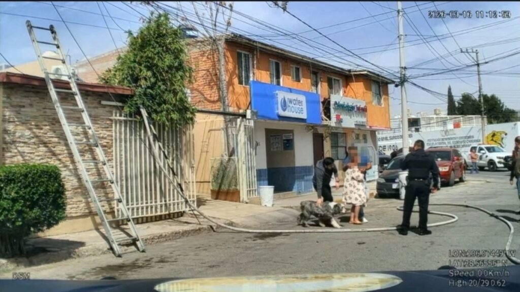 Rescataron Bomberos a pareja y sus cuatro perritos tras incendio en su vivienda