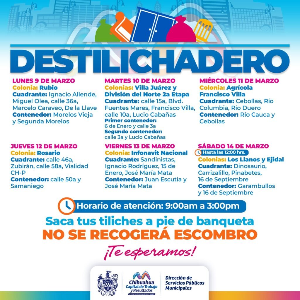 Estará programa Destilichadero en ocho colonias del 9 al 14 de marzo