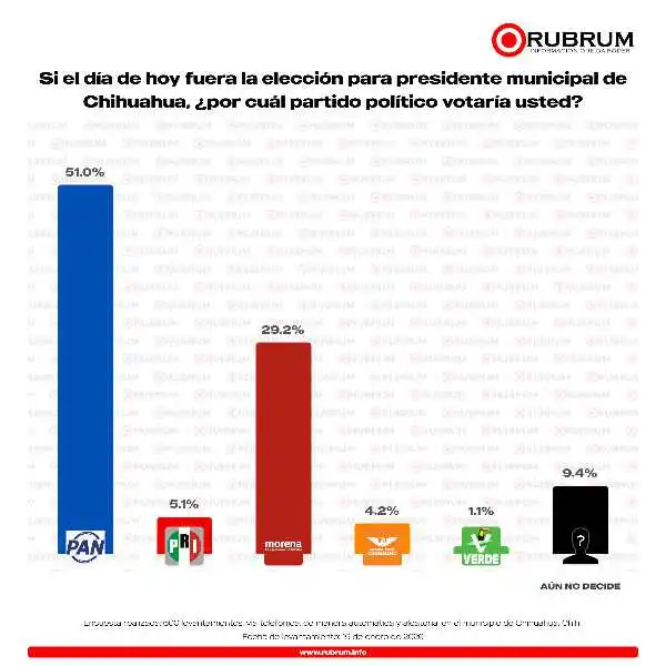Lidera PAN encuesta de RUBRUM por la alcaldía de Chihuahua; Jáuregui, Quezada y Fermín encabezan preferencias por partido político