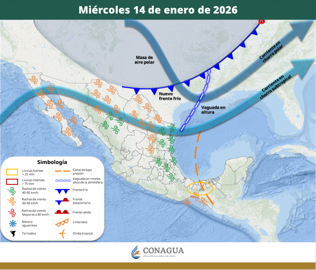 Este miércoles, la masa de aire polar que impulsó el frente frío número 27 sobre el norte, noreste y centro de México, así como la entrada del frente frío número 28 sobre el norte del país, en interacción con las corrientes en chorro subtropical y polar, un canal de baja presión y la entrada de […]