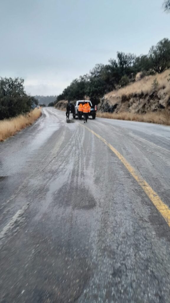 Tras un llamado de emergencia recibido a través del Sistema de Emergencias 9-1-1, personal operativo de la Coordinación Estatal de Protección Civil Chihuahua acudió al apoyo de conductores cuyos vehículos quedaron varados por el congelamiento del tramo carretero Chihuahua–Namiquipa, a la altura del kilómetro 30.