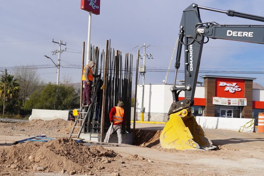 El Gobierno Municipal, a través de la Dirección de Obras Públicas, avanza a buen ritmo en la construcción del Paso Superior de la carretera Chihuahua–Aldama y la avenida Fuerza Aérea, obra que registra un avance global del 20%.