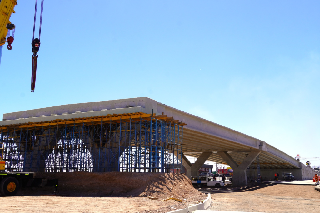 Este avance permite visualizar con mayor claridad la dimensión de la obra, mientras que el proceso de colocación de trabes continuará desarrollándose conforme al programa de construcción en jornadas específicas.