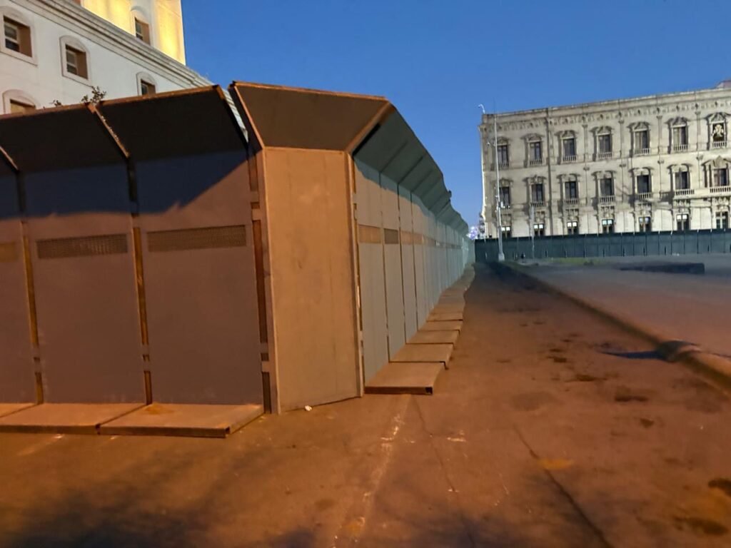 Se trata de una muralla que actúa como perímetro para evitar que, dentro de la marcha por el Día Internacional de las Mujeres, se generen daños al edificio.