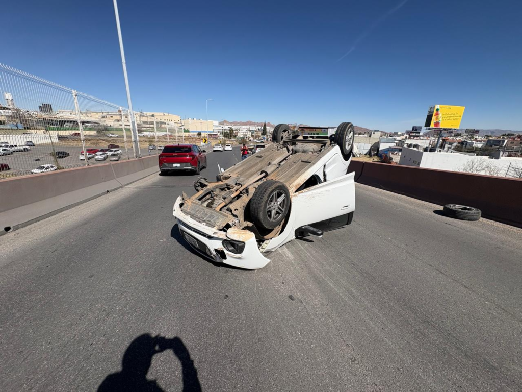 El accidente ocurrió cuando el conductor perdió el control del volante debido al exceso de velocidad, se impactó contra el muro provocando que el rin delantero del lado izquierdo se desprendiera provocando que volcara sobre su toldo.