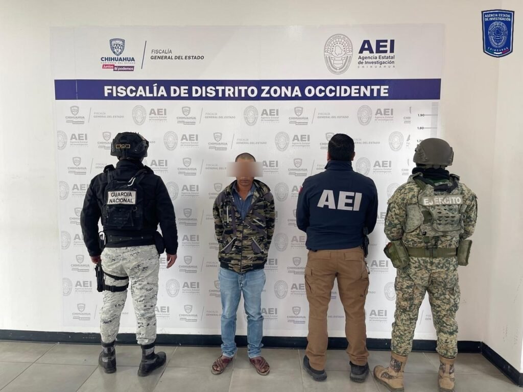 Mientras que los investigadores del Destacamento de Creel, apoyados por la Guardia Nacional y el Ejército, lograron la captura de Elfido L. T. , de 45 años de edad en la comunidad de Rahuibochi, del municipio de Bocoyna.