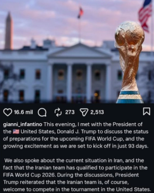 Lausana, Suiza. El jefe de la FIFA, Gianni Infantino, aseguró que el presidente estadunidense, Donald Trump, le prometió durante una conversación el martes por la noche que acogerá sin trabas a la selección iraní en el Mundial de Futbol 2026 que se celebrará en América del Norte. Infantino mencionó por primera vez “la situación en Irán”, […]