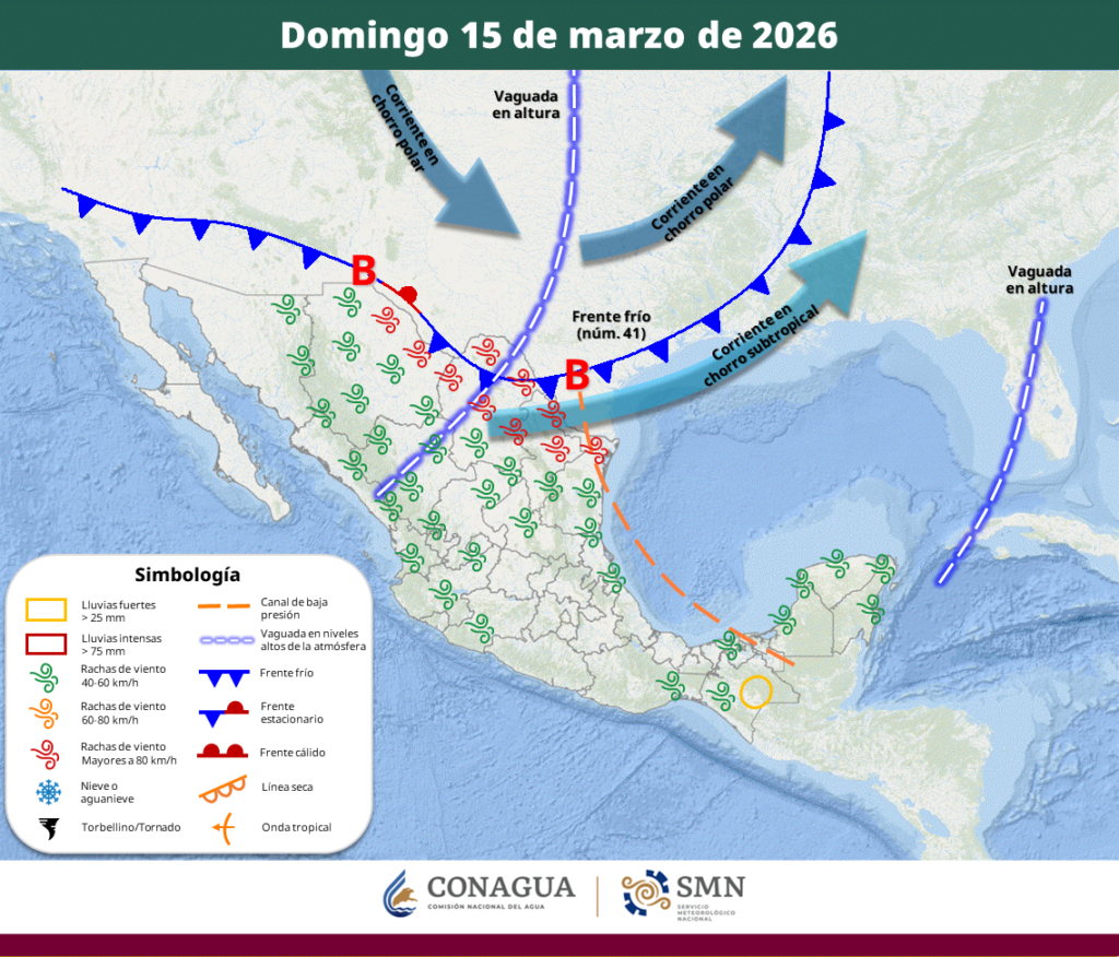 La Coordinación Estatal de Protección Civil dio a conocer que para este domingo 15 de marzo, un frente frío (número 41) sobre el sur de Estados Unidos en interacción con la corriente en chorro subtropical, una vaguada en altura, un canal de baja presión, una línea seca sobre Coahuila y la entrada de humedad procedente […]