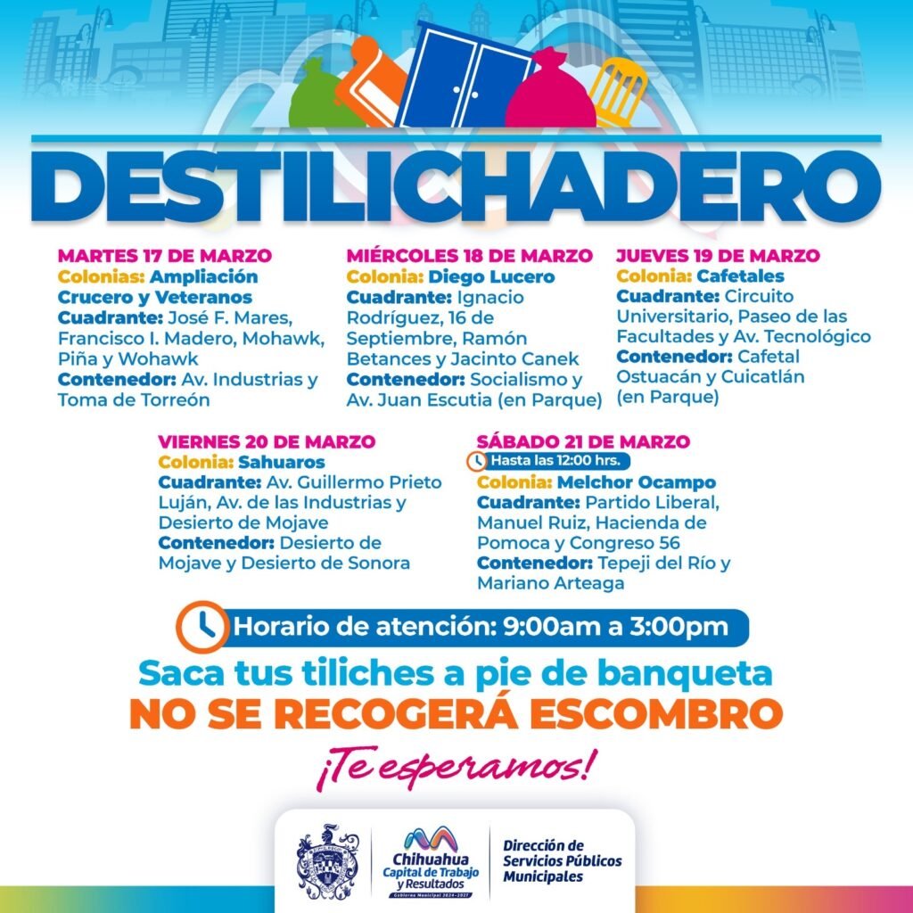 Estará programa Destilichadero en seis colonias del 17 al 21 de marzo