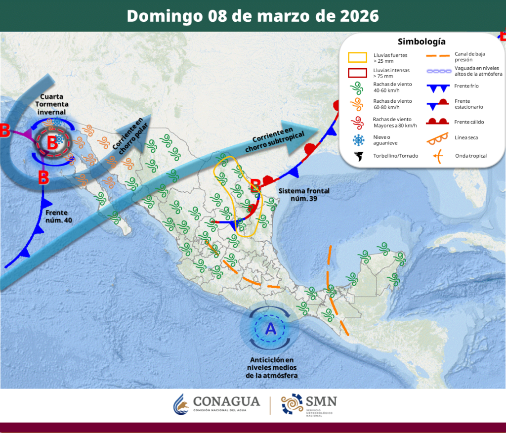 El frente núm. 39 se extenderá con características de estacionario sobre el noreste de México, en combinación con inestabilidad atmosférica y la advección de aire cálido y húmedo del golfo de México, ocasionarán rachas de viento de 40 a 60 km/h, chubascos y lluvias fuertes con descargas eléctricas y posible caída de granizo en el norte del país. Para el estado de […]