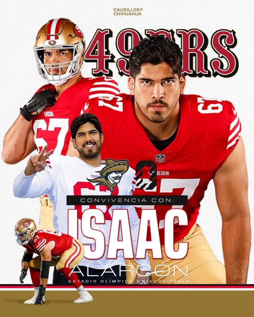 Los Caudillos de Chihuahua continúan elevando la experiencia para su afición y este próximo sábado 18 de abril tendrán un invitado de lujo: el mexicano Isaac Alarcón, actual jugador de los San Francisco 49ers de la NFL.