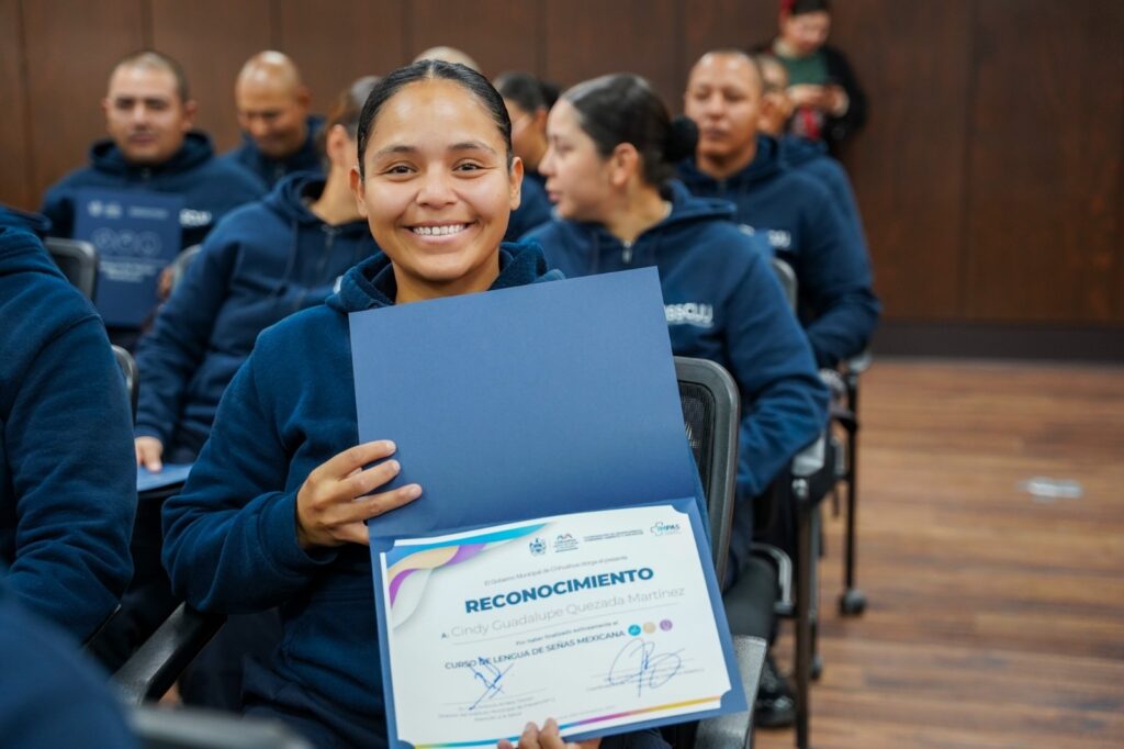 En esta edición participaron 53 cadetes de la Policía Municipal y dos servidores públicos de la Dirección de Seguridad Pública Municipal, quienes recibieron formación en vocabulario especializado para la atención de emergencias en Lengua de Señas Mexicana.