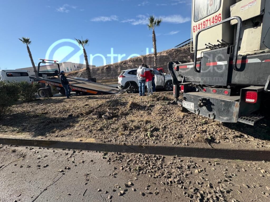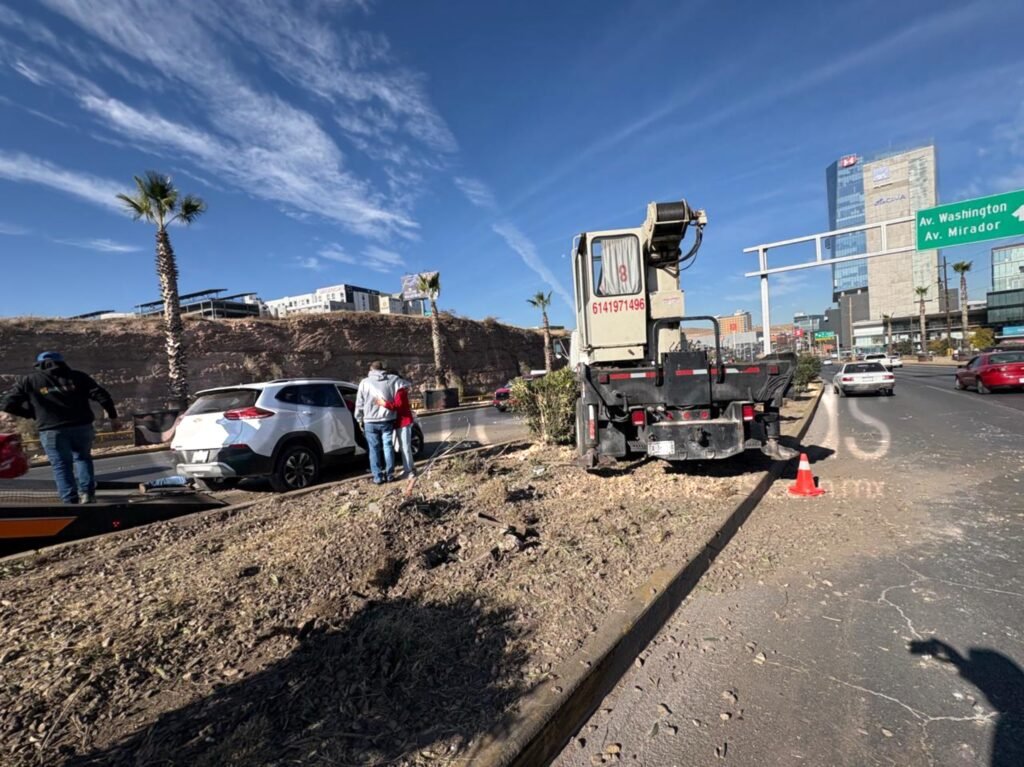 Y es que, sobre el periférico de sur a norte circulaba una grúa y una camioneta Chevrolet traker.