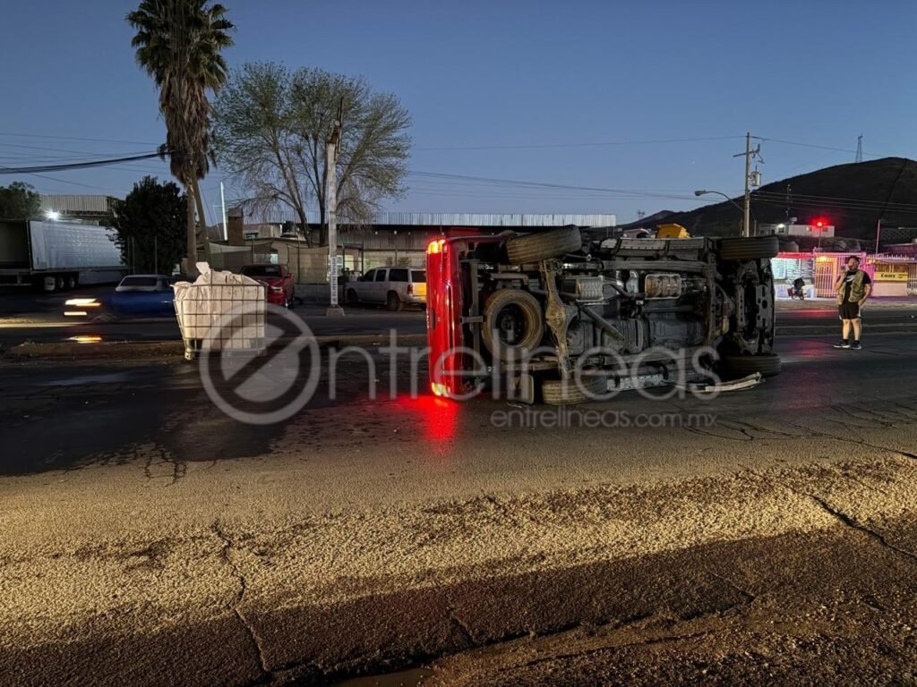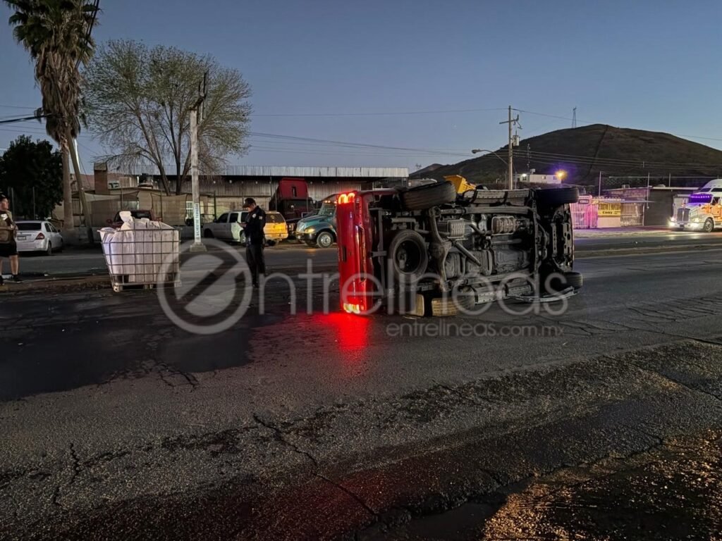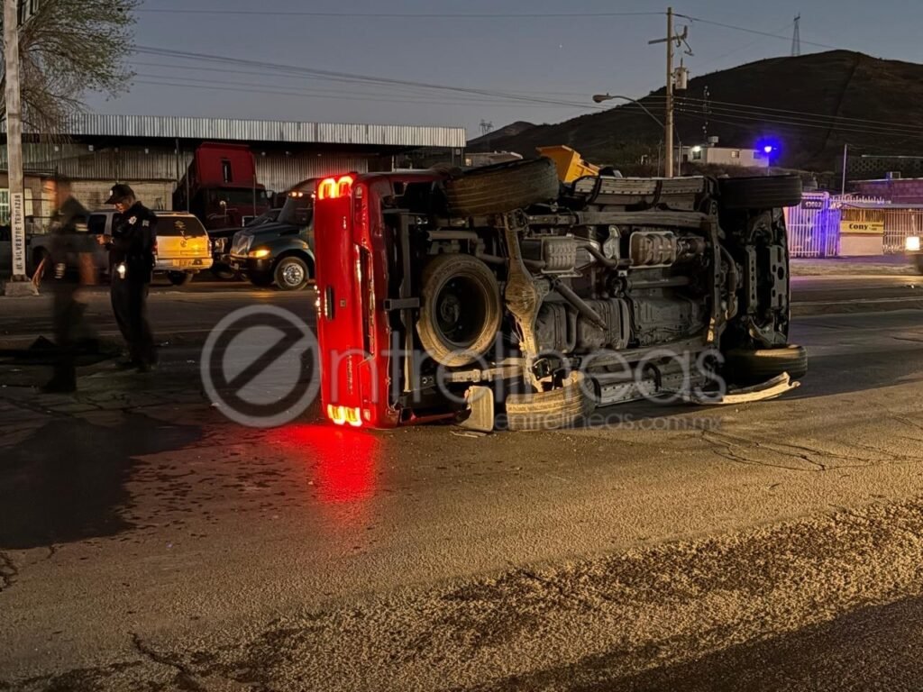 Chihuahua.– Un accidente vial con volcadura se registró sobre la carretera a Cuauhtémoc, a la altura del acceso a Labor de Terrazas, luego de la colisión entre una camioneta y un automóvil particular, dejando como saldo dos conductores con lesiones menores y cuantiosos daños materiales.