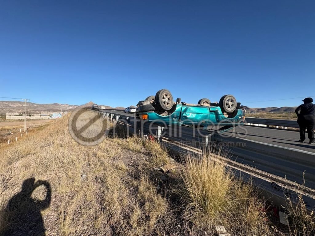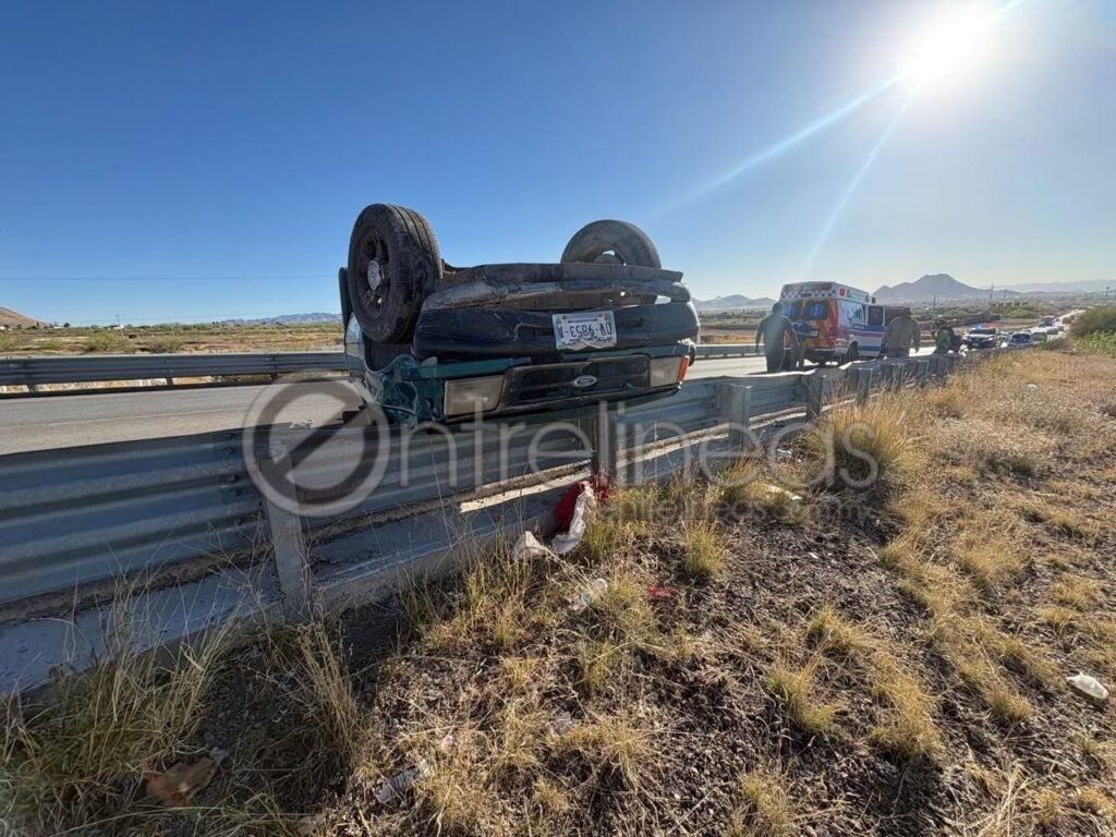Chihuahua.– Un accidente vial con volcadura se registró sobre el puente del Libramiento Oriente, en la carretera rumbo al Cereso, luego de que el conductor de una camioneta perdiera el control y se impactara contra la valla metálica de contención.