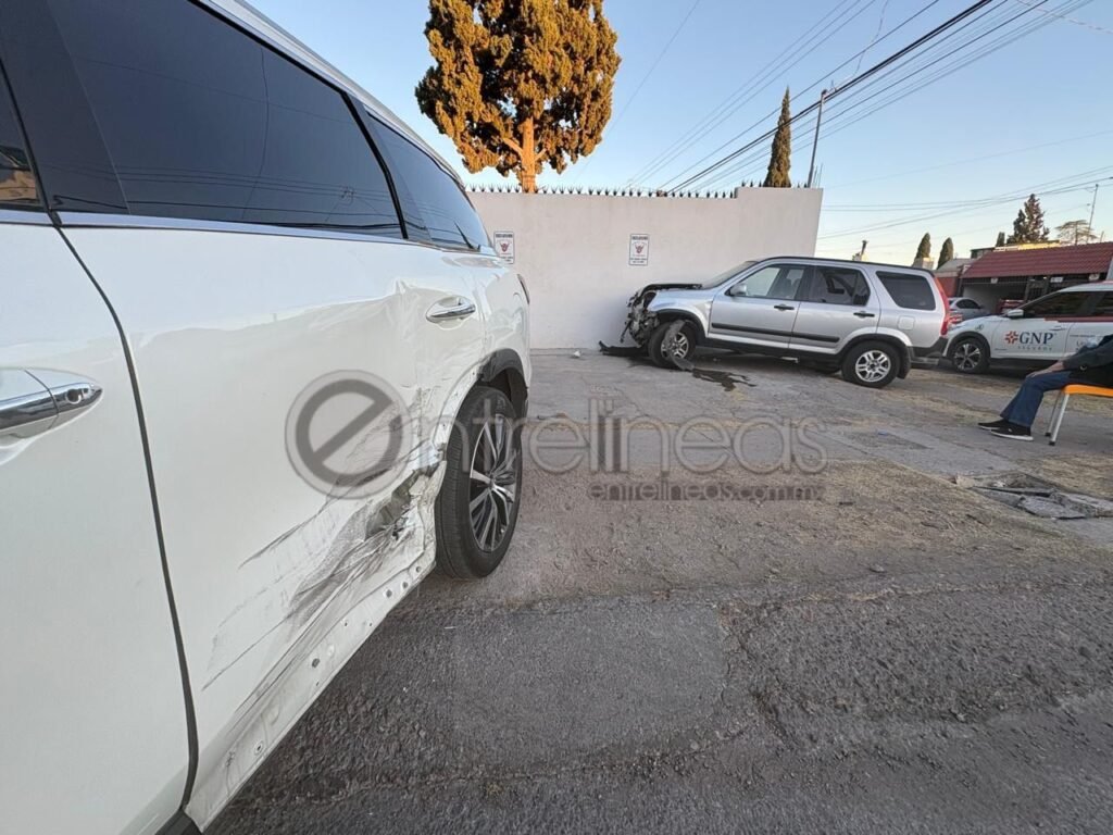 La noche de este martes se registró un fuerte choque en la avenida Río de Janeiro, cuando una camioneta Honda CR-V, conducida por una adulta mayor, impactó a una camioneta Infiniti QX60 de último modelo y posteriormente se proyectó contra la barda de un negocio.