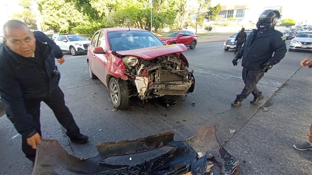 En ese momento, circulaba por la lateral del Periférico de la Juventud el conductor de un Nissan March de color rojo, quien tenía su semáforo en verde, por lo que fue impactado por el Tsuru.