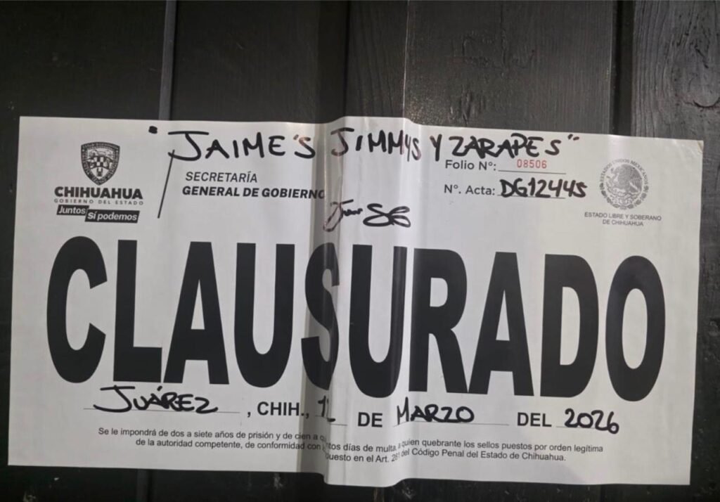 Dichas acciones dieron como resultado un total de 10 clausuras, de las cuales tres fueron en Chihuahua, una en Delicias y seis en Ciudad Juárez.