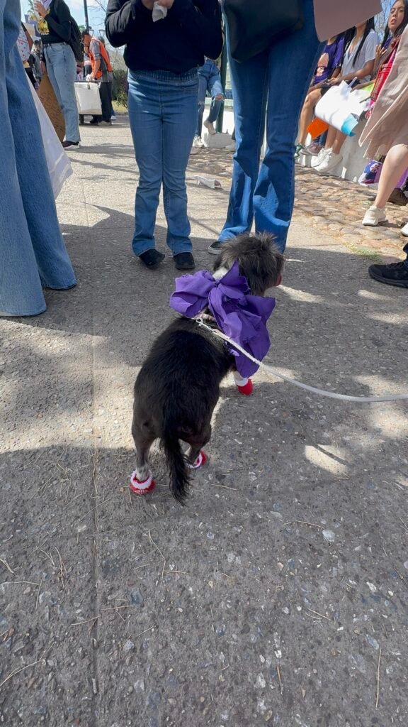 Niñas y mascotas también asistieron a la manifestación que tiene como destino la Plaza del Ángel.