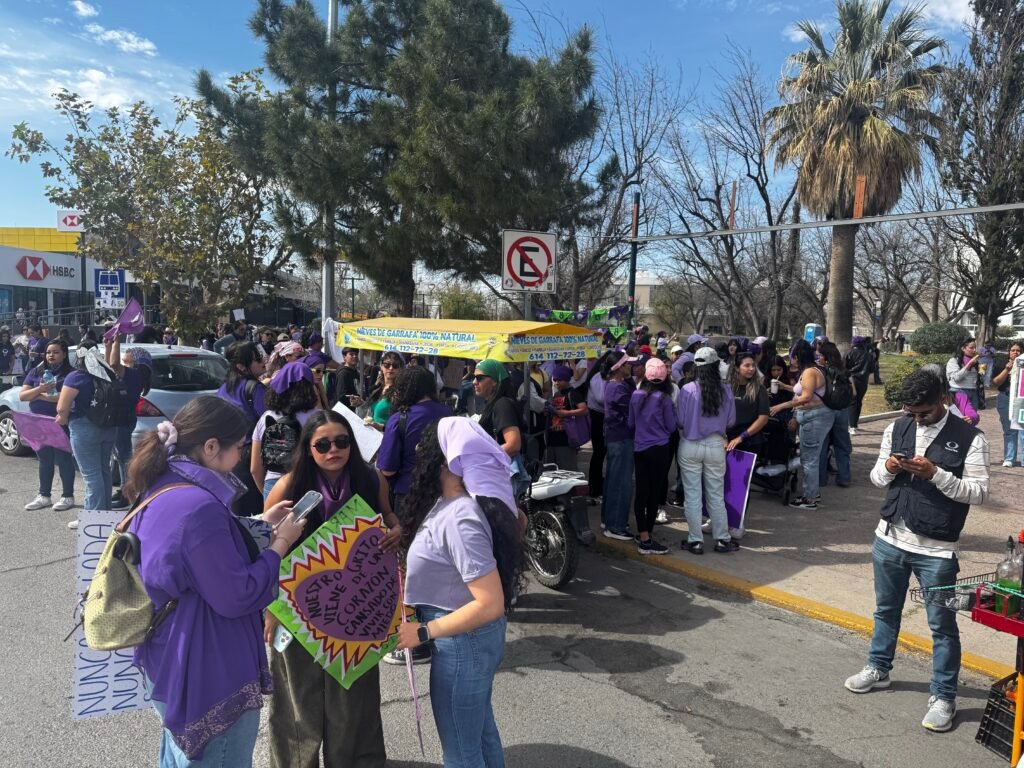 Decenas de mujeres comenzaron a concentrarse en la glorieta de Pancho Villa para la marcha del Día Internacional de las Mujeres.