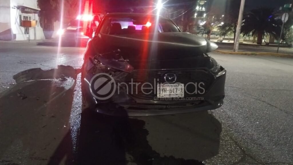 Un accidente vial se registró esta noche en el cruce de las calles Ignacio Ramírez y 20 de la colonia Santa Rita.