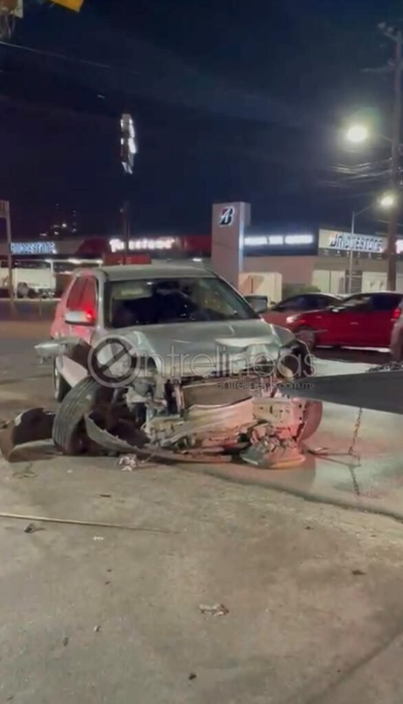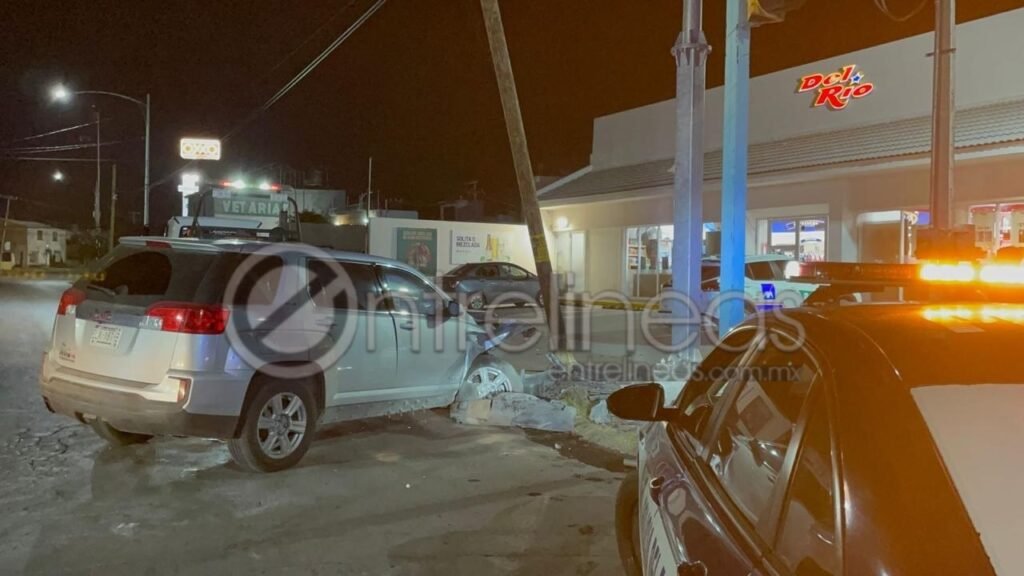 Chihuahua, Chih.— La noche de este sábado se registró un aparatoso accidente vial sobre la avenida Independencia, luego de que el conductor de una camioneta GMC Terrain perdiera el control del vehículo y se impactara de frente contra un poste de telefonía.