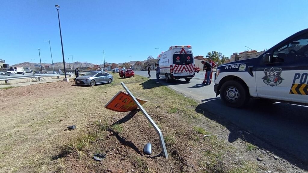 La conductora de un vehículo Toyota Corolla, sufrió un percance vial, luego de que circulaba sobre la vialidad Nogales en sentido de oeste a este y justo antes de subir el puente que cruza la Sosa Vera en una curva pronunciada pierde el control del volante se sale del camino, se impacta contra un anuncio vial de la obra en construcción del puente que está más adelante ocasionándole daños al vehículo, así como la ruptura del vidrio trasero. Al lugar arribaron paramédicos de Cruz Roja, quienes le brindaron la primera atención sin ser necesario su traslado a un hospital; en un principio se había reportado que el vehículo habría volcado y había caído al interior del canal pero a la llegada de elementos de la Policía Vial descartaron tal incidente señalando que solo fue salida de camino con el impacto al señalamiento haciéndose cargo del accidente.