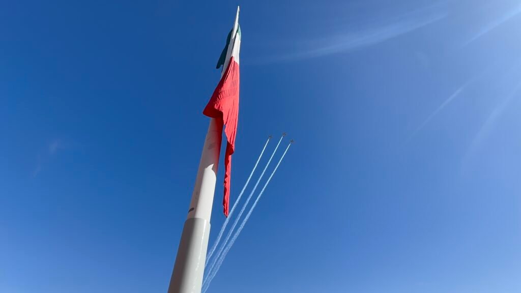 En la explanada del parque El Palomar, autoridades civiles y militares se reunieron para conmemorar el 204 aniversario de la creación de la Bandera de México.