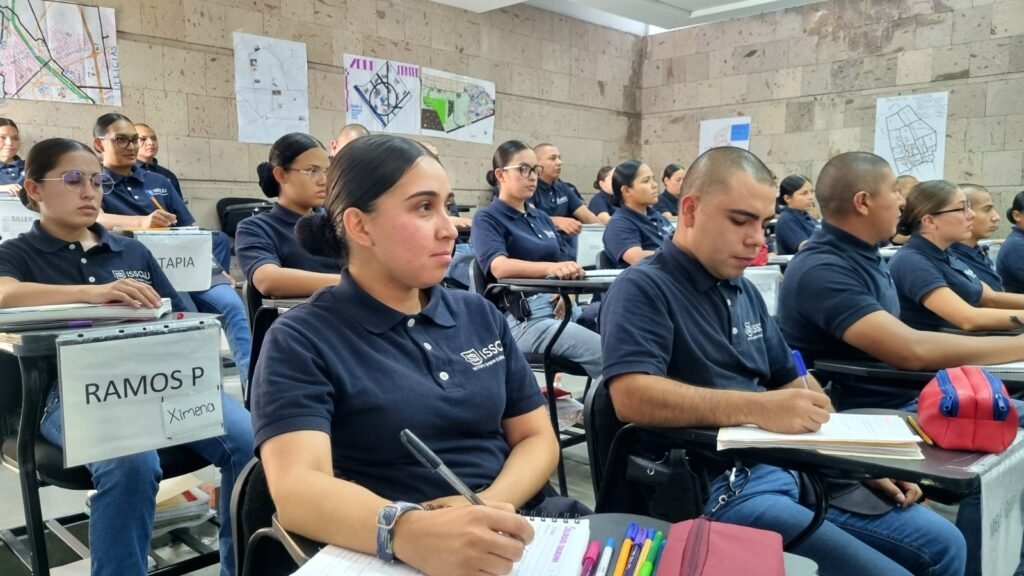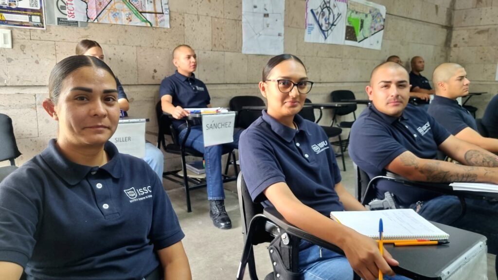 En el Instituto Superior de Seguridad Chihuahua (ISSCUU), las y los cadetes reciben preparación desde temprana hora, combinando clases teóricas con prácticas en campo, que incluyen conducción de vehículos de emergencia, acondicionamiento físico y técnicas policiales.