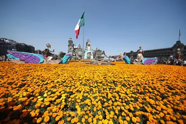 Realizan en el Zócalo de CdMx ofrenda monumental de Día de Muertos