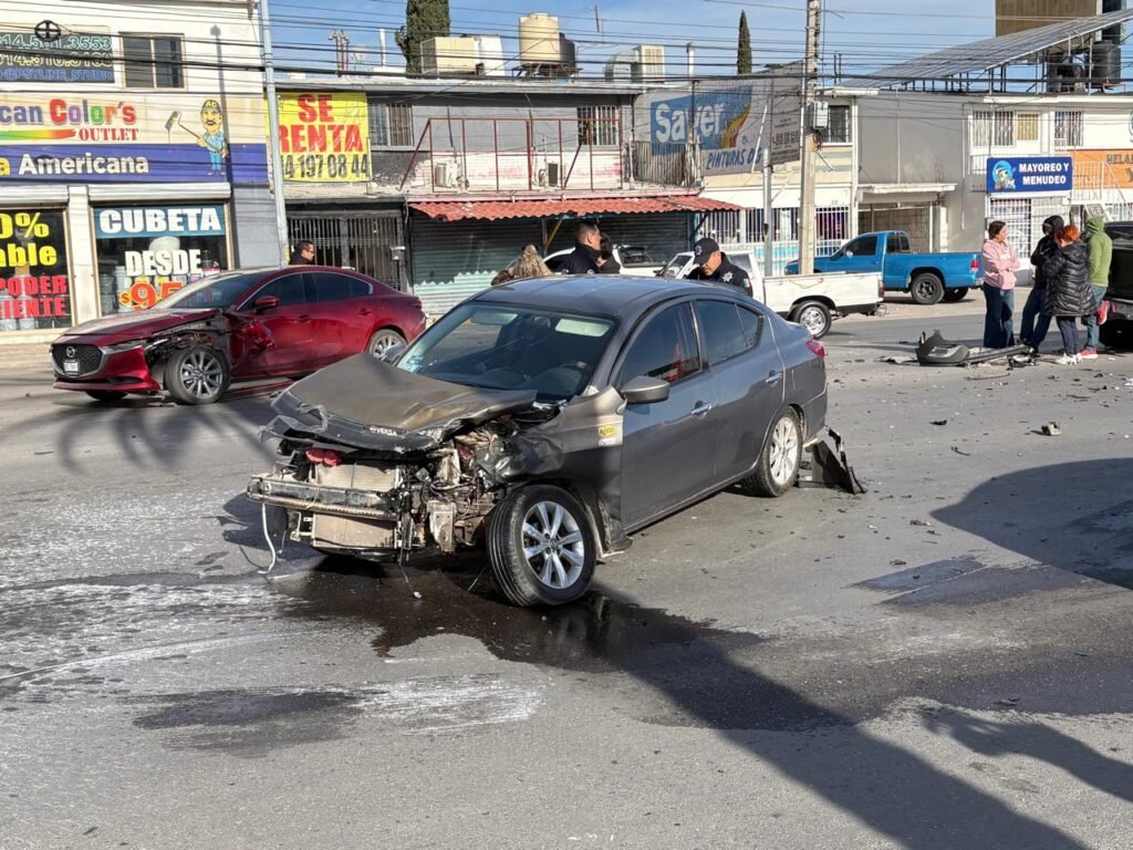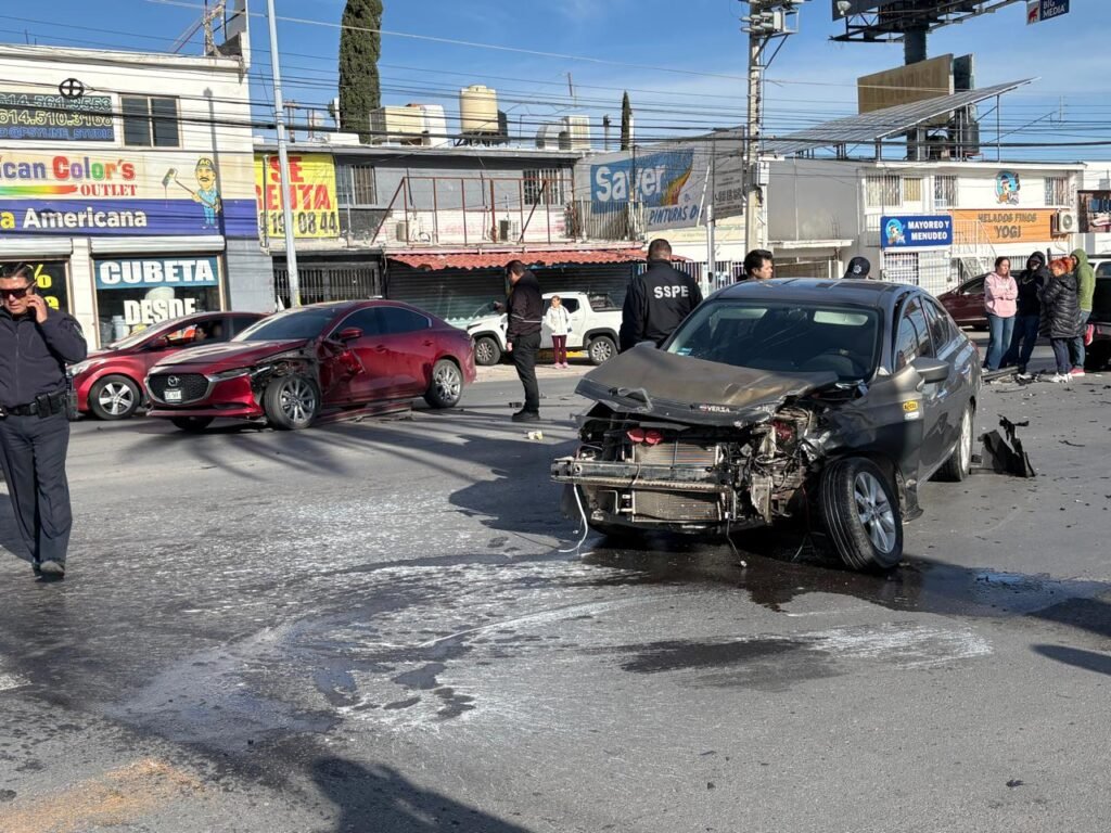 La mañana de este lunes se registró un aparatoso choque sobre la avenida Zarco y 68 entre tres vehículos.