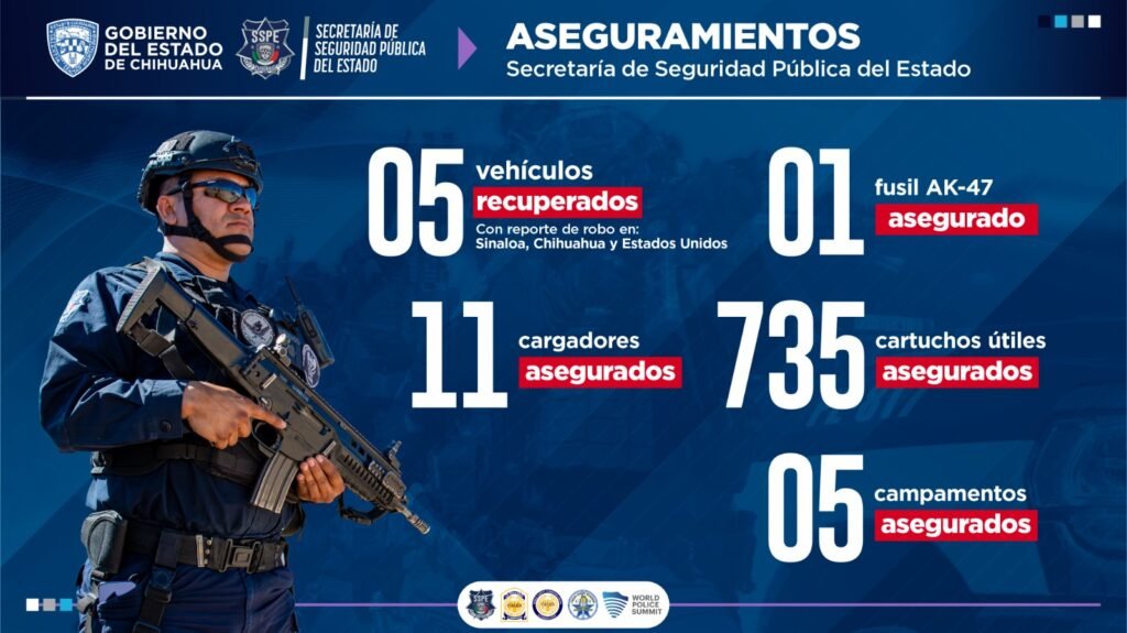 En cuanto a los resultados por región, el secretario Gilberto Loya informó que en el municipio de Guachochi se han asegurado 25 integrantes de grupos delictivos, lo que ha permitido contener su presencia en la zona serrana.
