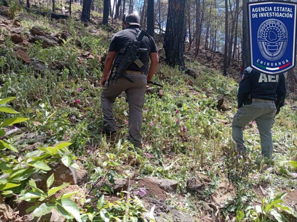 Como resultado de las acciones de seguridad implementadas en la región sur de la entidad, elementos de la Agencia Estatal de Investigación (AEI) localizaron y destruyeron un sembradío de amapola en el lugar conocido como Arroyo de Mesa Lisa, sección de Baborigame, municipio de Guadalupe y Calvo.