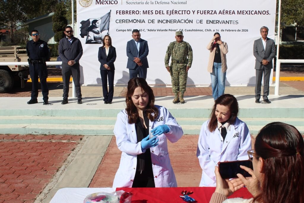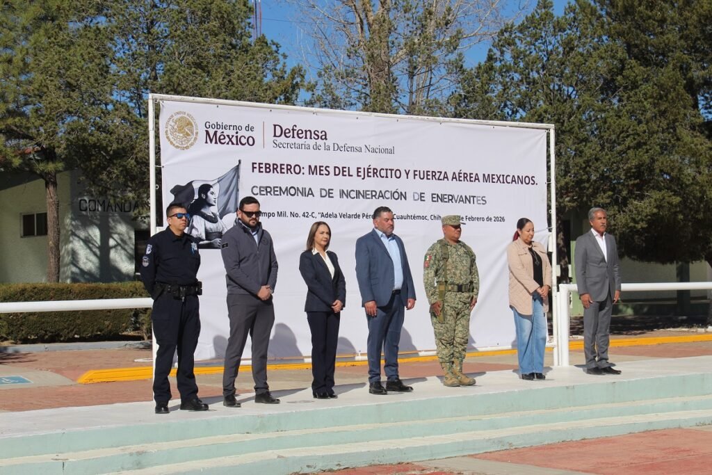 La ceremonia de incineración de enervantes se llevó a cabo la mañana de este jueves 26 de febrero del 2026 en las instalaciones del 2º Batallón de Infantería en el marco de las actividades del mes del Ejército y Fuerza Aérea Mexicana.