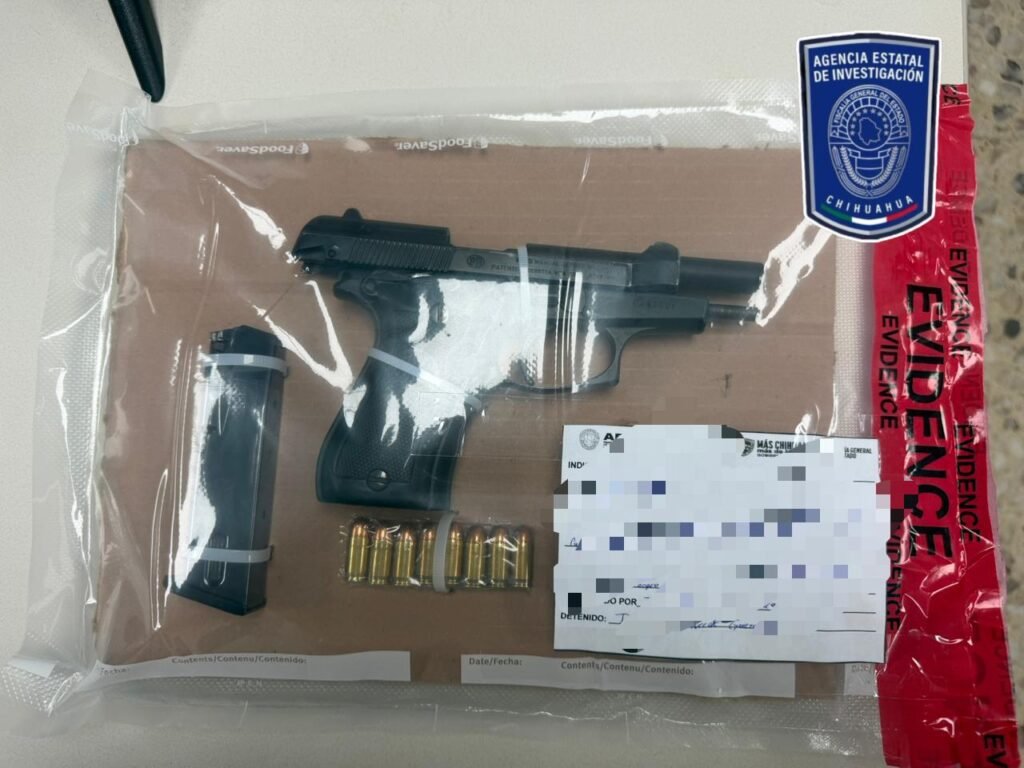 Elementos de la Agencia Estatal de Investigación (AEI), adscritos a la Fiscalía de Distrito Zona Centro, en la ciudad de Chihuahua, detuvieron a dos hombres en flagrancia por delitos contra la salud y por portación de arma de fuego, en la colonia Molino de Agua.