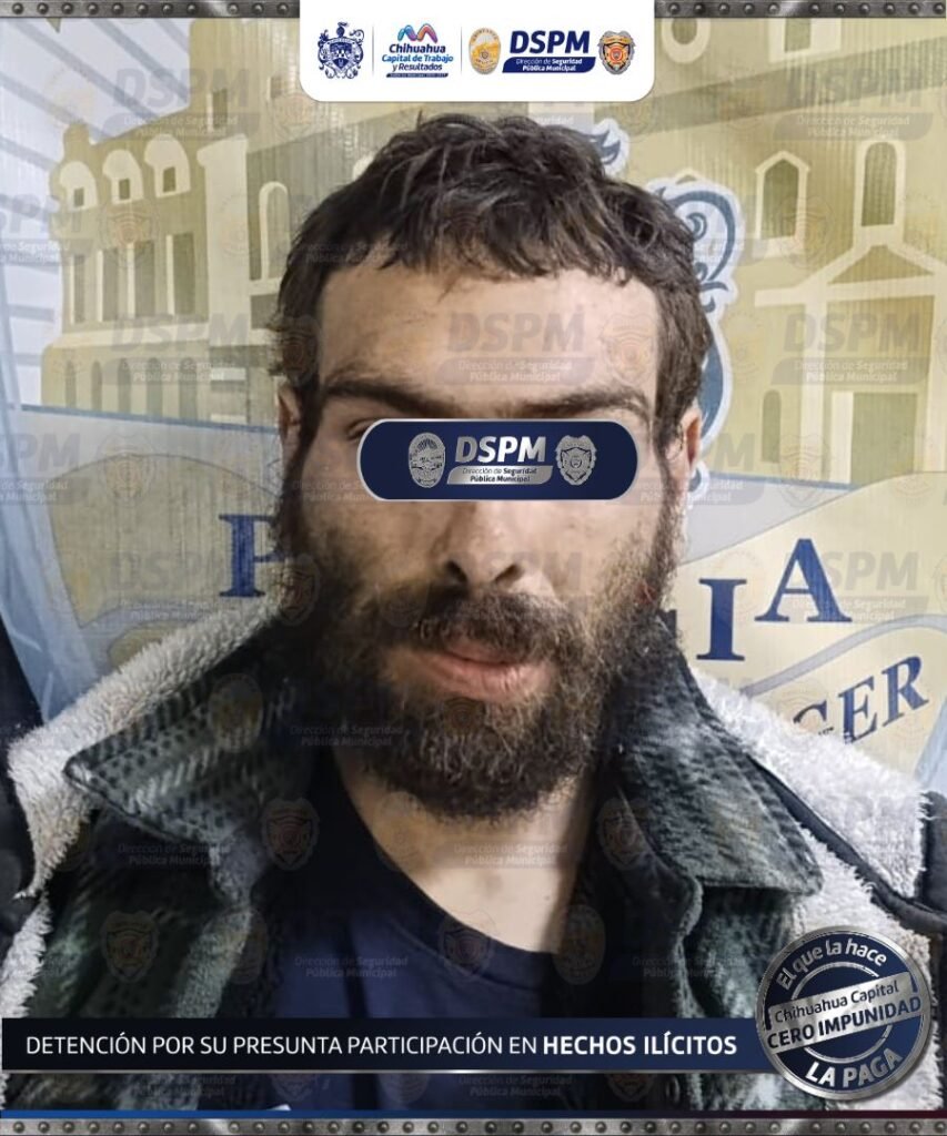 H.Ciudad de Chihuahua, Chih., a 24 de enero de 2026- Elementos de la Dirección de Seguridad Publica Municipal adscritos al Equipo de Grupos Especiales(EPE) y K9, lograron la detención de 3 hombres por el delito de daños en un domicilio ubicado en las calles del Pardo y del Oviedo en la colonia Galera V.
